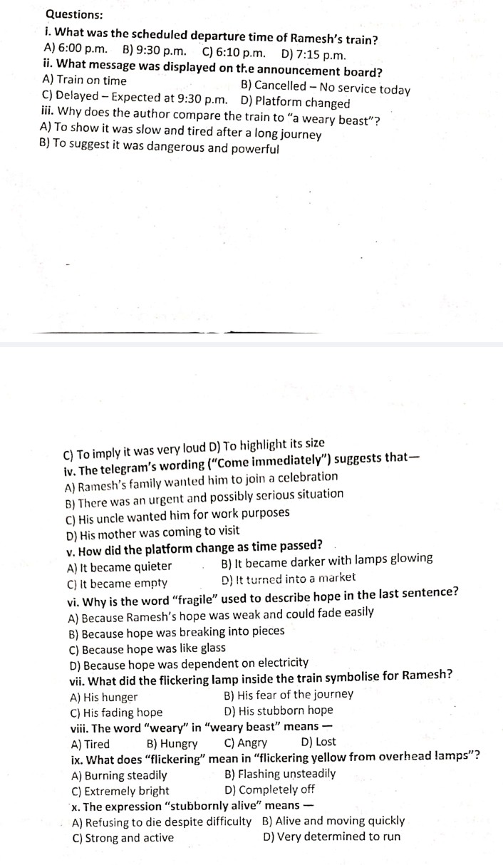 Q.1 (i) What was the scheduled departure time of Ramesh’s train?